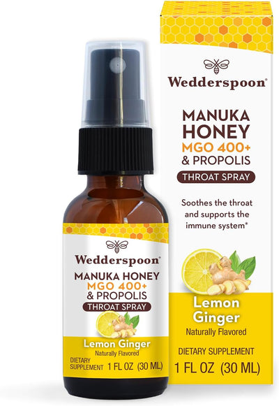Propolis & Manuka Honey Throat Spray 1 Oz with Lemon & Ginger by Wedderspoon
