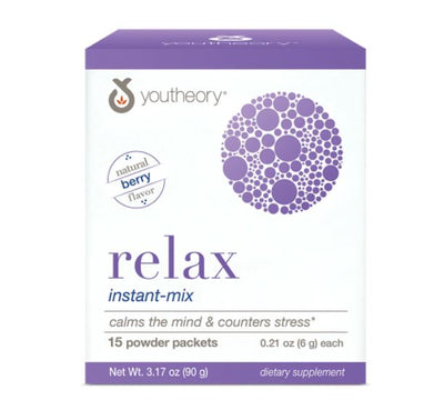 Youtheory Relax Magnesium Powder is a fun, fizzy and flavorful way to supplement your magnesium, while offering a unique blend of powerful anti-stress nutrients: L-theanine and GABA. L-theanine is an amino acid found in green tea and is known to promote mental calmness without drowsiness.* PharmaGABA® is the only natural-source GABA and is clinically shown to boost the production of alpha brain waves to help create a profound sense of physical relaxation.