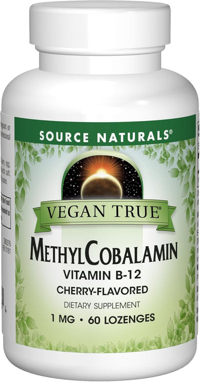 Vegan True, MethylCobalamin Vitamin B-12, Cherry , 1 mg, 60 Lozenges by Source Naturals