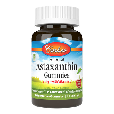 Carlson Astaxanthin Gummies are made with Astaferm™, the most advanced, state-of-the-art, sustainable source of high-quality astaxanthin. It's the first fermented astaxanthin, derived from Phaffia yeast, and is fast-acting and highly absorbable. Astaxanthin Gummies provide 8 mg of astaxanthin and 200 mg of vitamin C per serving and come in delicious, natural cherry-flavored vegetarian, non-GMO gummies.