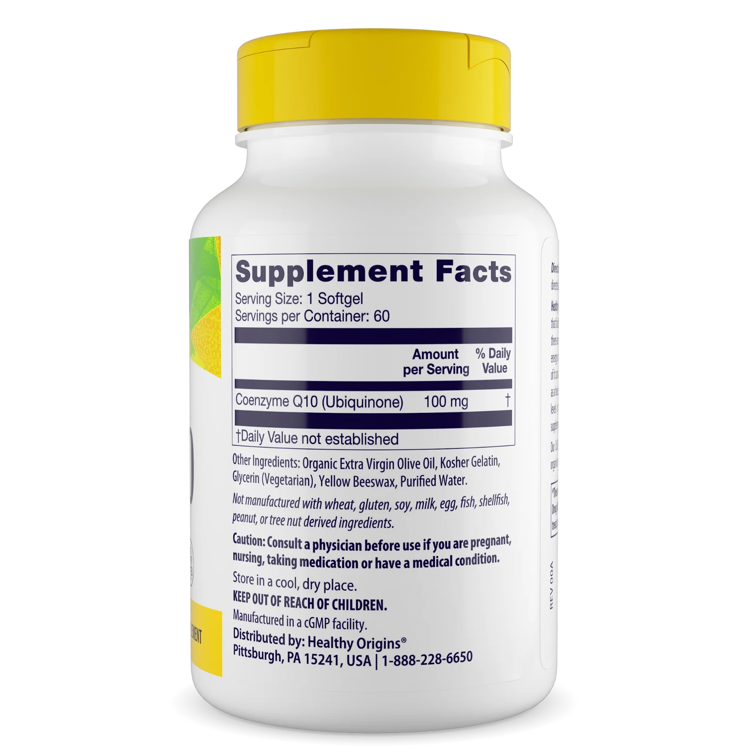 Healthy Origins CoQ10 (Ubiquinone) is a naturally occurring substance that facilitates the production of cellular energy. In every cell in your body there are small engines called mitochondria. Ninety-fIve percent of the total energy created within the body comes from these mitochondria, and none of it can take place without CoQ10. Our Natural (trans-isomer) CoQ10 is produced exclusively through a yeast fermentation process which is bio-identical to the CoQ10 produced within the body