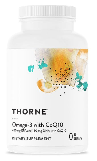Thorne’s Omega-3 with CoQ10 contains the two most vital omega-3 fatty acids from fish – EPA and DHA – combined with Coenzyme Q10 (CoQ10) for synergistic support and enhanced absorption.*