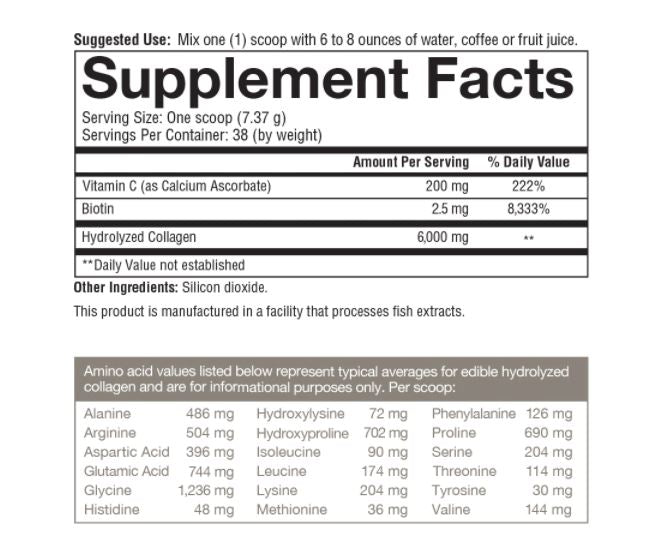 Youtheory Collagen Powder is designed to help counteract age-related collagen loss. Supplying 6,000 mg of hydrolyzed collagen per serving, this convenient and easy-to-use product helps replenish essential beauty proteins, while delivering powerful health benefits. This formula is enhanced with vitamin C to aid internal collagen production and Biotin to support health & beauty factors.