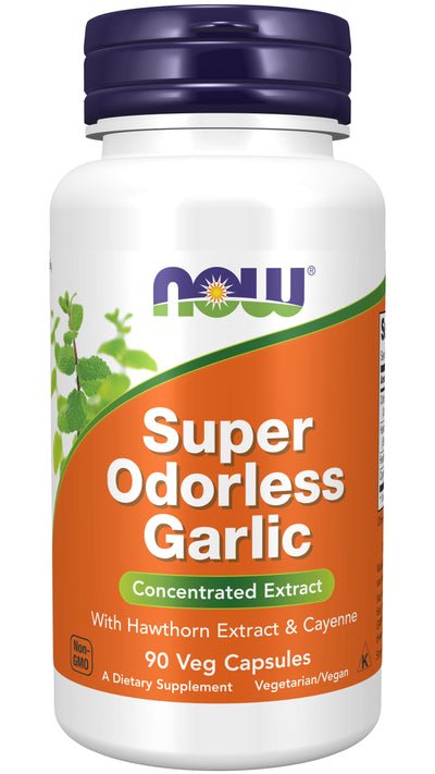 NOW Super Odorless Garlic is extracted from Allium sativum. This Odorless Garlic extract is aged for 18 months, is highly purified, and has been deodorized while maintaining the nutritional value of garlic. Garlic abounds with naturally occurring sulfur compounds, amino acids and trace minerals. We have included standardized Hawthorn Extract, Hawthorn Berry and Cayenne Pepper to round out this health supporting formula.