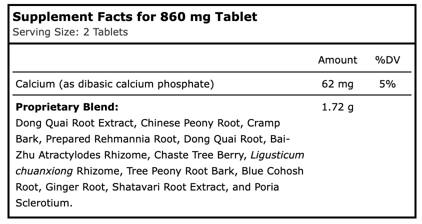 Suggested Use: 2 tablets twice daily between meals. Take throughout the month, except during menstruation.