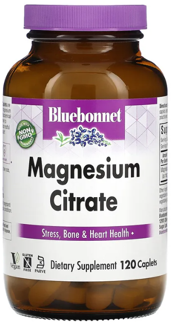 Bluebonnet's Magnesium Citrate 400 mg Caplets are formulated with magnesium in a chelate of magnesium citrate. Magnesium is required in over 300 biochemical reactions in the body, and it is primarily known to calm the mind and body, reduce stress, induce restful sleep, increase bone density, as well as support immune and heart health.