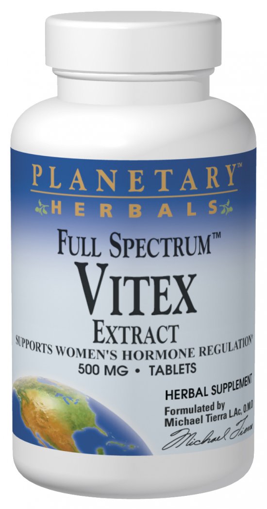 Full Spectrum™ Vitex Extract tablets combine a concentrated vitex extract, standardized to 0.5% agnusides, with whole berries. Combining standardized amounts of important constituents with pure botanicals is Planetary Herbals' guarantee that all the important primary and secondary compounds are present.