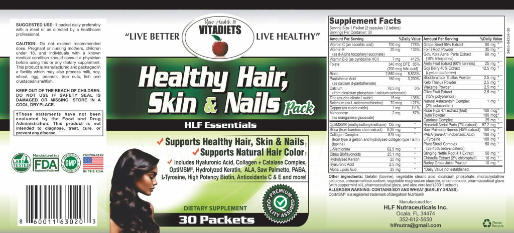 Healthy Hair, Skin, & Nails Pack 30 Packets by Your Health & Vitadiets
