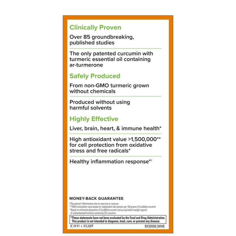 • One CuraMed softgel provides curcumin benefits equivalent to up to 500 capsules of turmeric