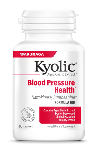 Kyolic Aged Garlic Extract begins with 100% organically† grown garlic bulbs. Kyolic Formula 109 contains a unique and natural combination of Nattokinase and Suntheanine with Aged Garlic Extract to help relax and support healthy blood pressure through different pathways.