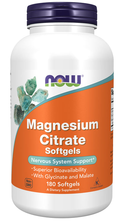 Magnesium is a mineral that is critical for energy production and metabolism, muscle contraction, nerve impulse transmission, and bone mineralization. It is a required cofactor for an estimated 300 enzymes. Among the reactions catalyzed by these enzymes are fatty acid synthesis, protein synthesis, and glucose metabolism. Magnesium status is also important for regulation of calcium balance through its effects on the parathyroid gland. Magnesium Citrate is easily absorbed, and NOW Magnesium Citrate Softgels are provided in a liquid base with chelated forms for superior bioavailability.