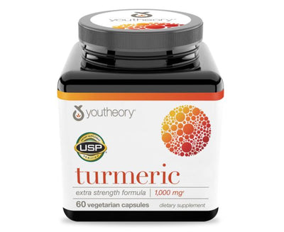 Youtheory Turmeric supplies the most clinically- studied turmeric extract on the market (containing 95% total curcuminoids). This formula is enhanced with BioPerine® black pepper to boost the absorption and bioavailability of curcuminoids.