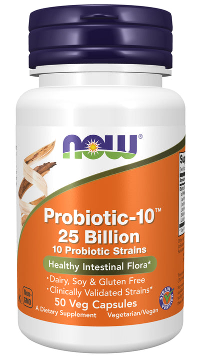 NOW Probiotic-10 offers a balanced spectrum of live organisms consisting of acid-resistant probiotic bacterial strains that are known to naturally colonize the human GI tract. Probiotic bacteria are critical for healthy digestion, help maintain the integrity of the intestinal lining, support proper intestinal motility and participate in the detoxification process. Probiotic-10 utilizes bacterial strains that have been clinically validated for their support of healthy immune system function.