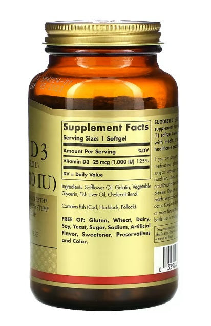 Vitamin D is a fat-soluble vitamin that is required to promote calcium absorption, which helps to maintain healthy bones and teeth. Vitamin D also supports a healthy immune system and neuromuscular function. The Vitamin D3 in this product is the same form produced by the body when our skin is exposed to sunlight. As we age, our bodies may absorb this important nutrient less efficiently. This product utilizes oil from select livers of deep-sea, cold water fish. The oil has been molecularly distilled to remove harmful contaminants. This formulation is offered in oil-based softgels to promote optimal absorption and assimilation.