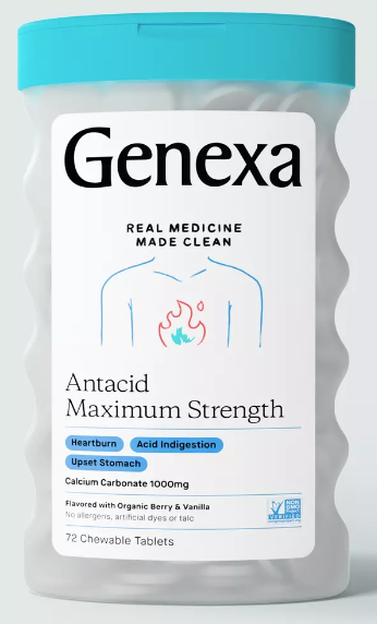 Genexa Antacid Maximum Strength is real medicine, made clean - providing maximum strength relief from heartburn, acid indigestion, sour stomach, and upset stomach associated with these symptoms.