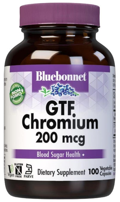 Bluebonnet's GTF Chromium 200 mcg Capsules contain GTF, a yeast-source trivalent chromium. Available in easy-to-swallow vegetable capsules for maximum assimilation and absorption.