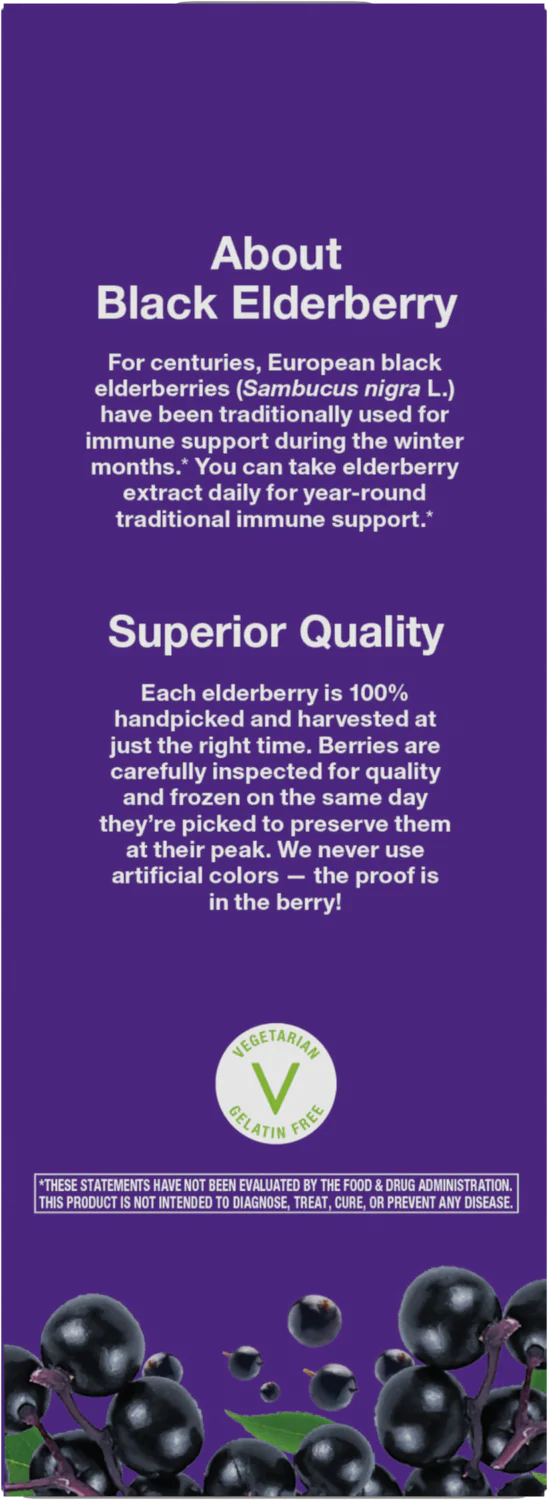 - Made from a premium cultivar of black elderberries (Sambucus nigra L.)