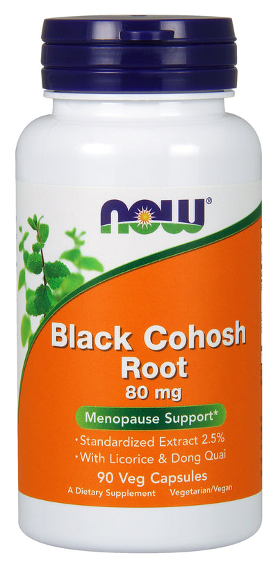 Black Cohosh is a plant that has been historically used by Native American women. Current scientific research shows that Black Cohosh Root may help support a healthy response to the natural changes occurring during menopause. NOW Black Cohosh Root also includes Licorice Root and Dong Quai, which have enjoyed widespread popularity in Asia for centuries, especially among middle aged women.