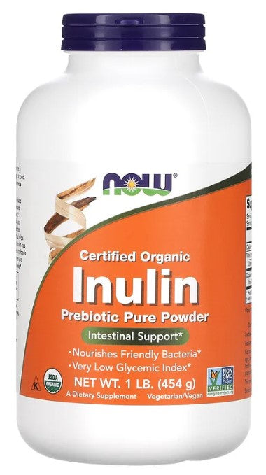 Inulin, a fructooligosaccharide (FOS), is a soluble prebiotic fiber that is resistant to digestion and reaches the large intestine essentially intact. Intestinal probiotic bacteria consume inulin and in turn, produce the short-chain fatty acids that nourish the cells lining the colon. Inulin thus helps to maintain intestinal health and function. Inulin has a pleasant flavor that adds a mild sweetness to foods and drinks, but has a very low glycemic index and will not negatively impact serum glucose levels.